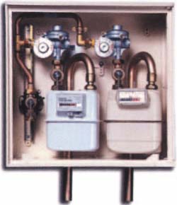 | B 21C701012 | Coffret S300 double comptage 10m3 / h 21mb Entrée pour tube PE DN15 Robinet de sécurité DN15 Régulateur B10N sans compteur G6 Crosse de sortie CU DN32 |